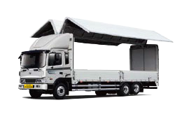 적재함 뚜껑이 날개처럼 열리는 차량으로 파레트를 지게차로 상하차할 때 이용합니다.